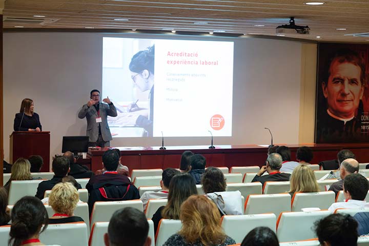 Salesians Sarrià va organitzar dijous passat la quarta edició de la trobada Salesians Sarrià x Empresa per exposar les bones pràctiques de la Formació Professional que va aplegar més de vuitanta empreses i institucions. L’acte es va iniciar amb les paraules de benvinguda del director titular, José Abascal, que va destacar la necessària vinculació del la Formació Professional amb les empreses ‘per compartir sinèrgies i adaptar la formació dels alumnes i les competències adquirides a les necessitats reals d’un mercat laboral en constant evolució’.