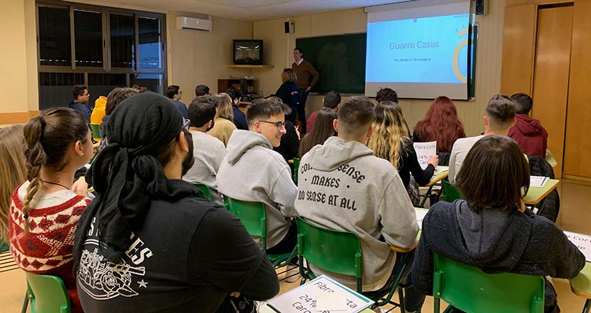 Daniel Domínguez, product manager de la empresa Arjowiggins-Guarro Casas, ha explicado esta semana a los alumnos del ciclo formativo de Grado Superior Diseño y edición de publicaciones impresas y multimedia los diferentes materiales de recubrimiento para encuadernación y packaging de lujo. Daniel describió las características de los materiales y también su aplicación en los diferentes productos.